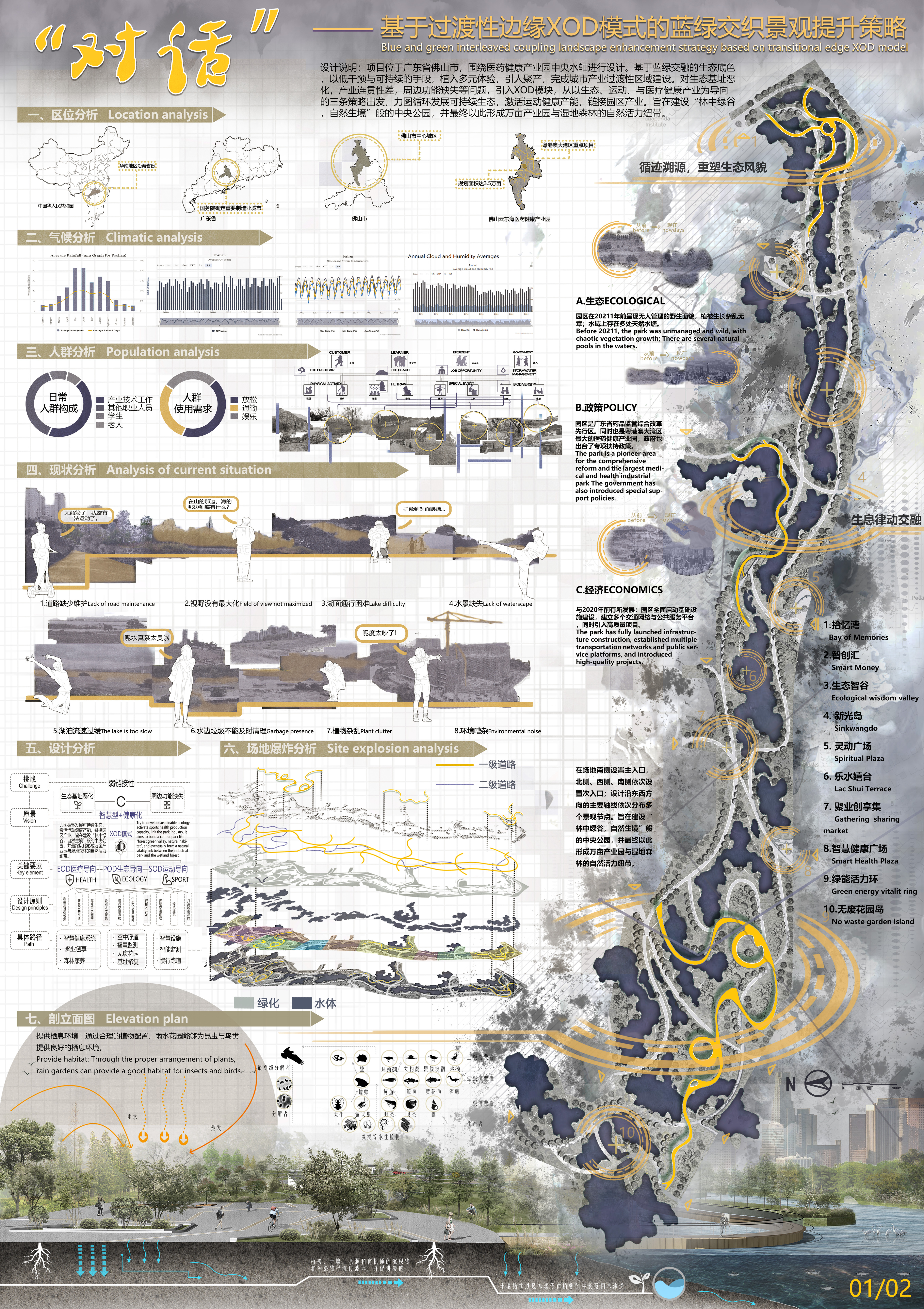 大赛主题:“佛山医药康健工业园中轴水廊的景观计划设计”